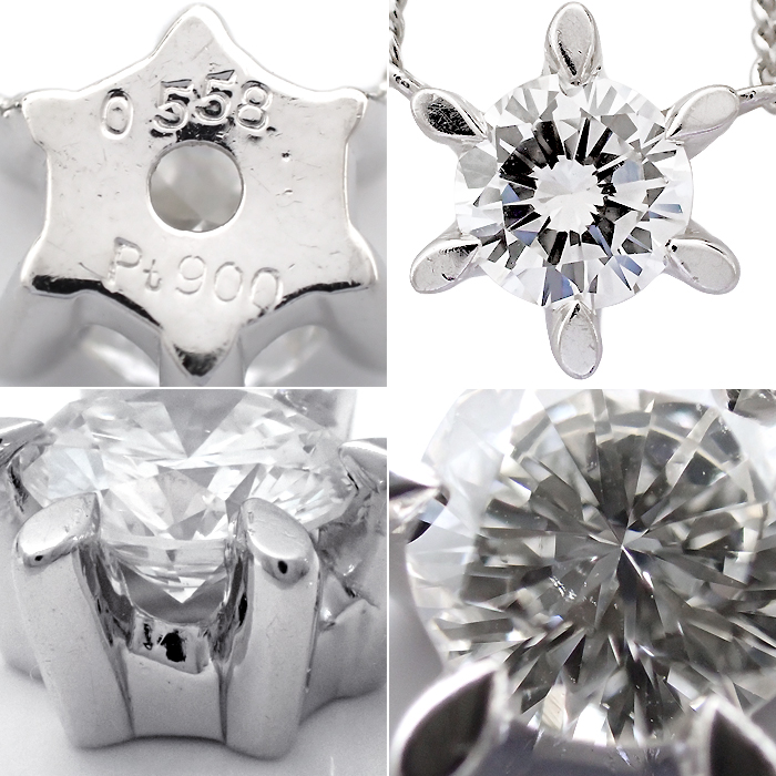 詳細 | ダイヤモンド:0.558ct 重量:3.5g トップ:取外し不可能 ※ダイヤモンドには10倍のルーペで確認できる天然特有のごく僅かなインクルージョンがあります。 ※Pt900/Pt850に僅かな小傷や変色などがあります。 |