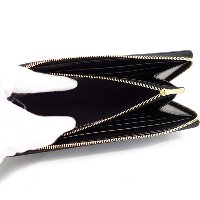 | 詳細 | カラー:ブラック 金具:ゴールド ファスナー開閉式 内側:札入れ2/オープンポケット2/小銭入れ1(ファスナー開閉式)/カード入れ12 ※新品同様の綺麗な状態ですが、レザーにはごく僅かに小傷・押し型、金具には小傷・くすみなどがあります。 ※画像の色の見え方は、お使いのモニターやディスプレイによって異なります。 |