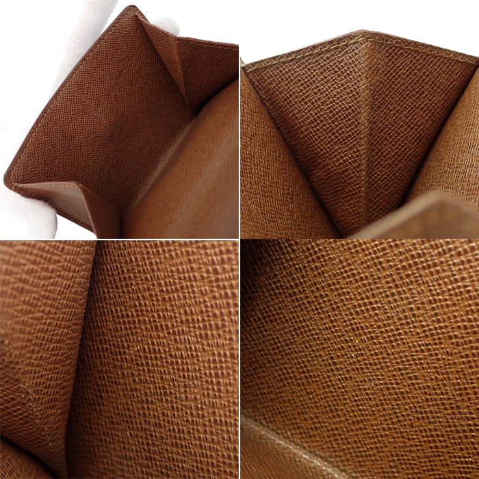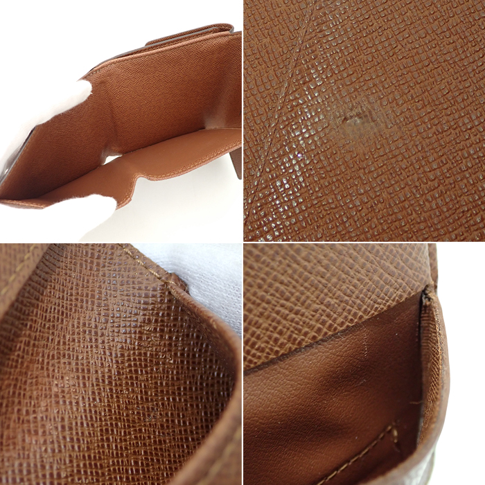 | 状態 | コバに割れやスレ、糸のほつれが見られます。 内側には押し跡やわずかな剥がれ・小傷、金具部分に傷やくすみなどがあります。 ※店頭展示品の為、多少の擦れ・小傷・汚れなどがつく場合があります。 |